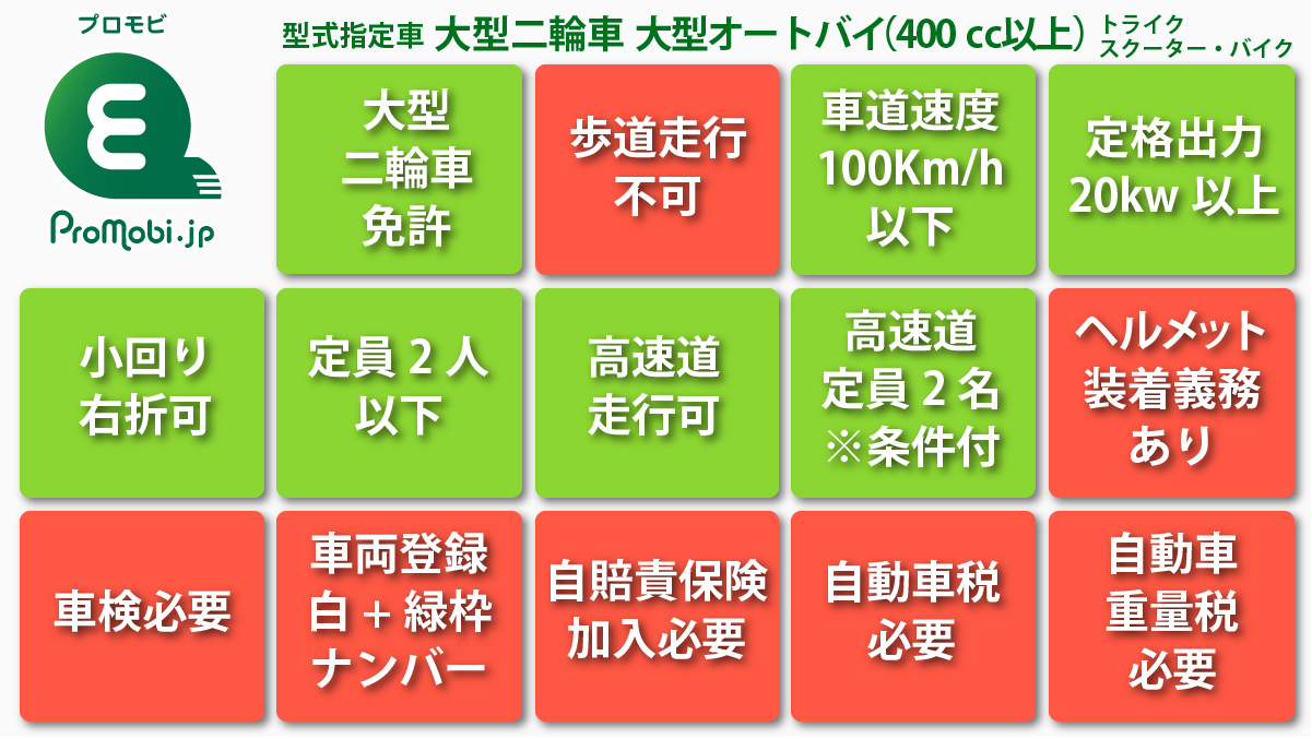 車両の特徴:大型二輪車 /大型オートバイ(400cc以上)