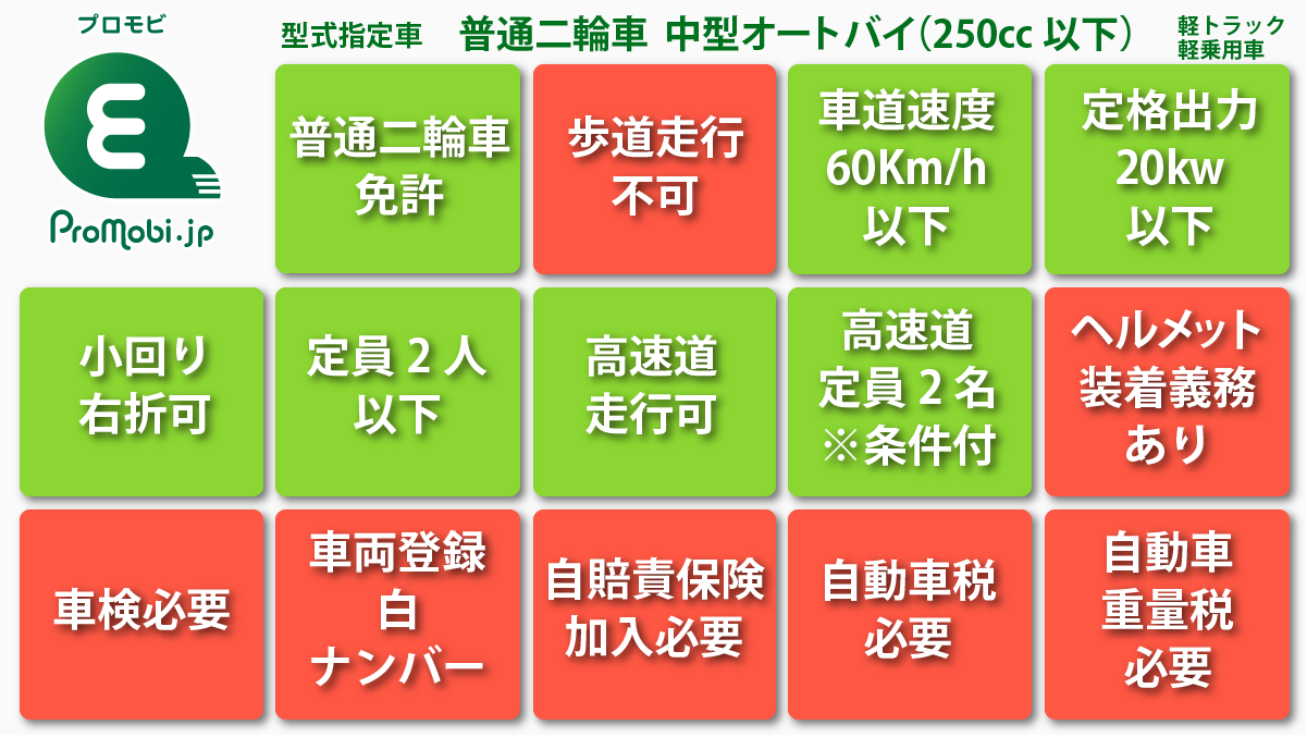 車両の特徴:普通二輪車/中型オートバイ(250cc以下)